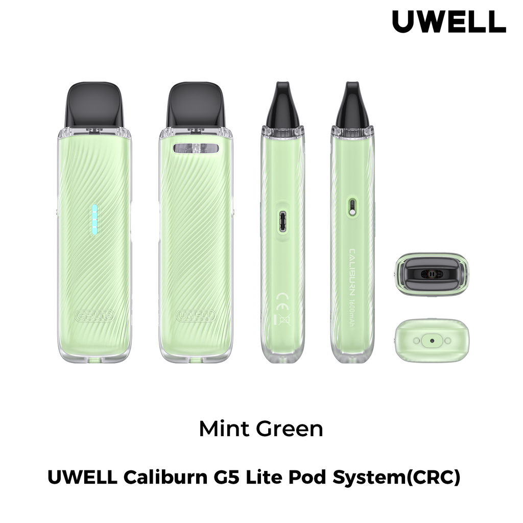 The UWELL CALIBURN G5 LITE POD KIT [CRC] offers a refined balance of power, portability, and user-focused design, making it an appealing option for those who want a dependable device without unnecessary complexity. Its translucent PC shell gives it a clean, modern appearance, while the lightweight structure ensures comfortable use throughout the day. Backed by a 1600mAh integrated battery capable of lasting up to six days, it delivers extended convenience for users who prefer minimal charging interruptions. The 2mL e-juice capacity keeps refills manageable, and the 4-bar battery indicator provides clear visibility of remaining power at any moment.